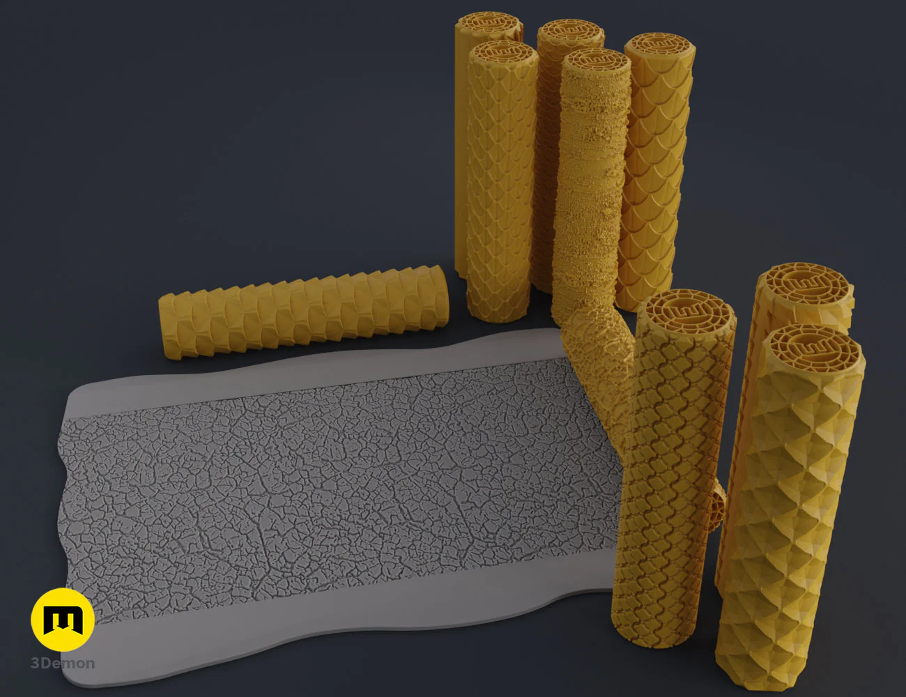 The download contains 10 original texture rollers (STL) ready to be 3D printed. More DnD rollers with a discount? Here!
