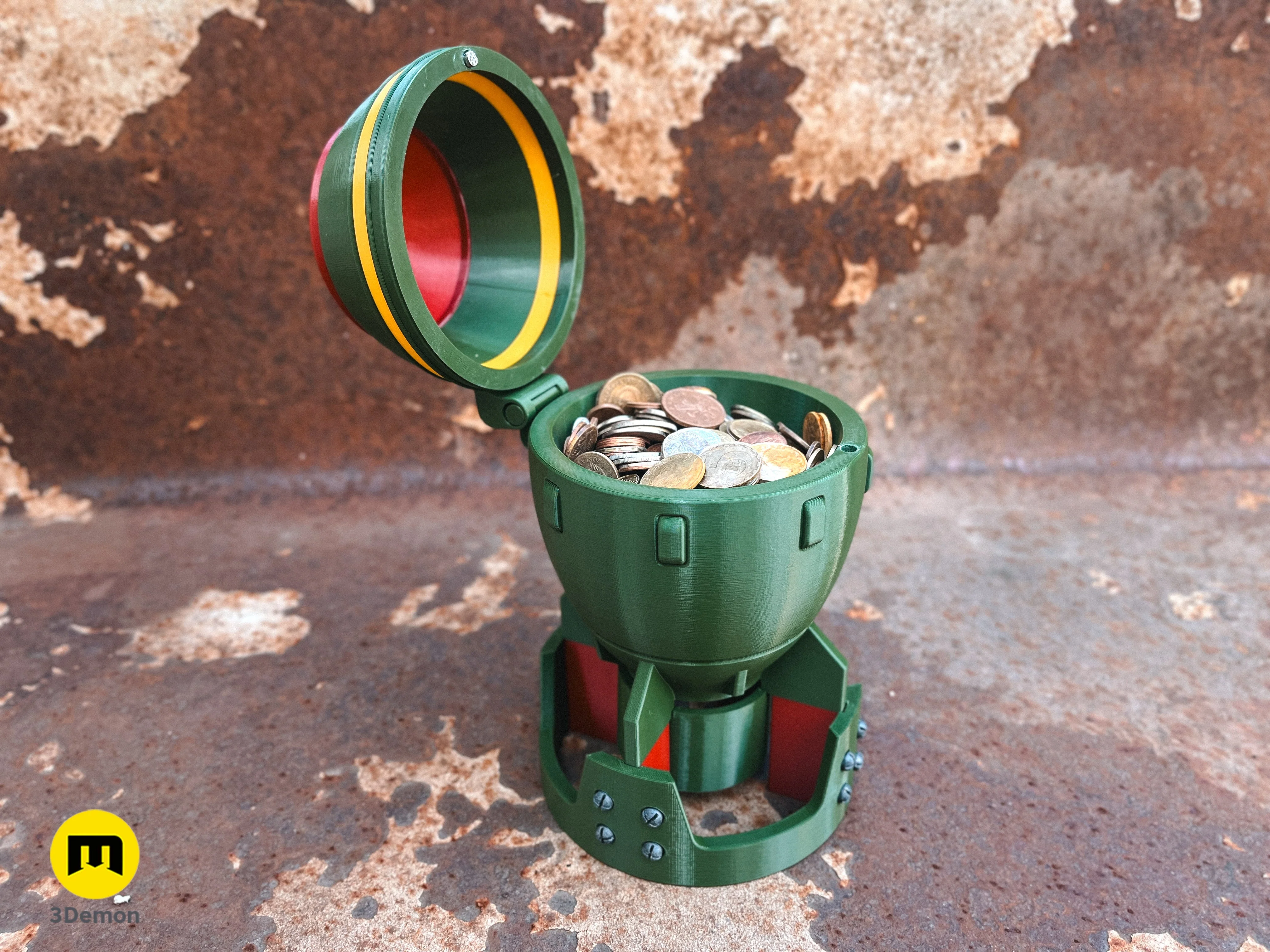Mini Nuke container from Fallout, featuring a functional hinge.