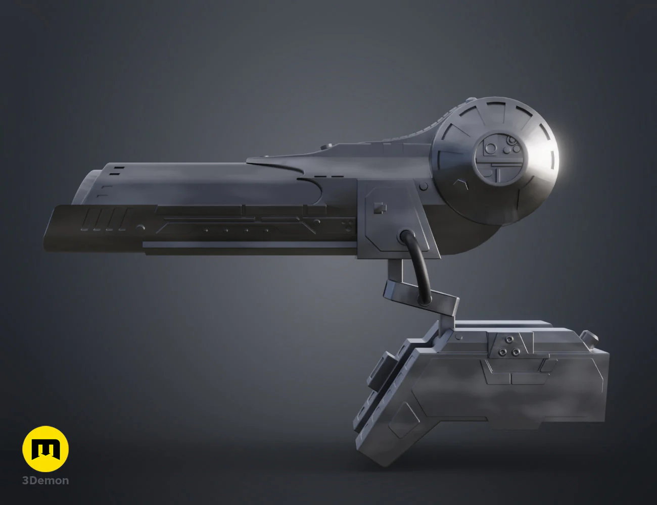 This is a digital 3D printable model of a Jungle Hunter Predator Plasmacaster (shoulder cannon) based on the Prime 1 Studio bust from Predator.