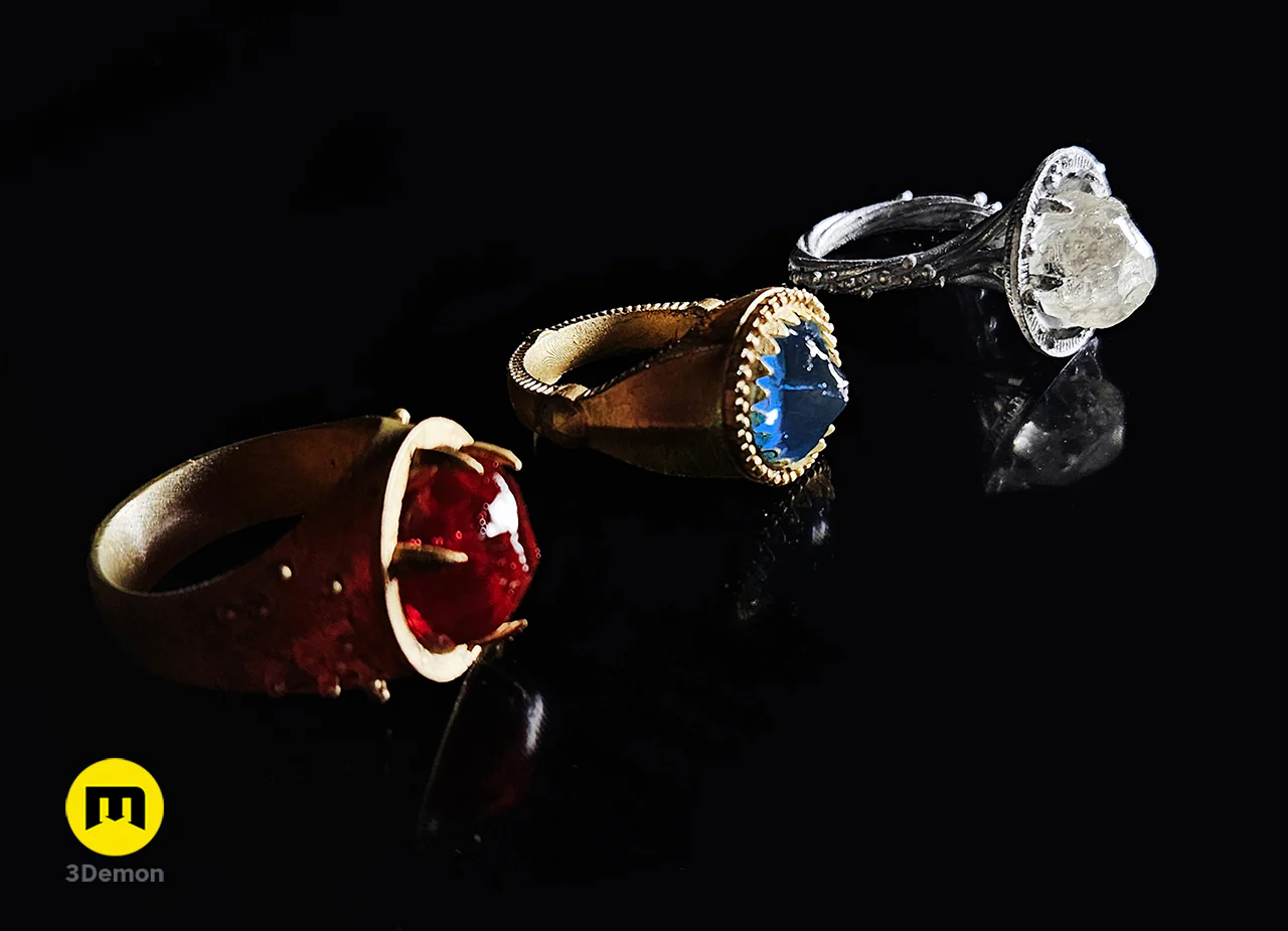 This is a digital 3D printable model of 3 Elven Rings from Lord of the Rings: Rings of Power.